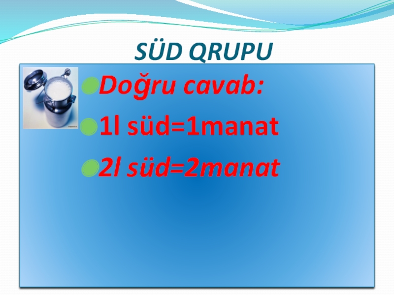 SÜD QRUPUDoğru cavab: 1l süd=1manat 2l süd=2manat