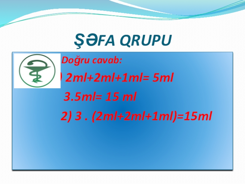 ŞƏFA QRUPUDoğru cavab:     		1) 2ml+2ml+1ml= 5ml