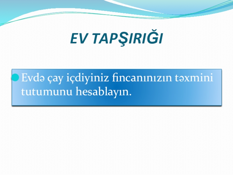 EV TAPŞIRIĞIEvdə çay içdiyiniz fincanınızın təxmini tutumunu hesablayın.