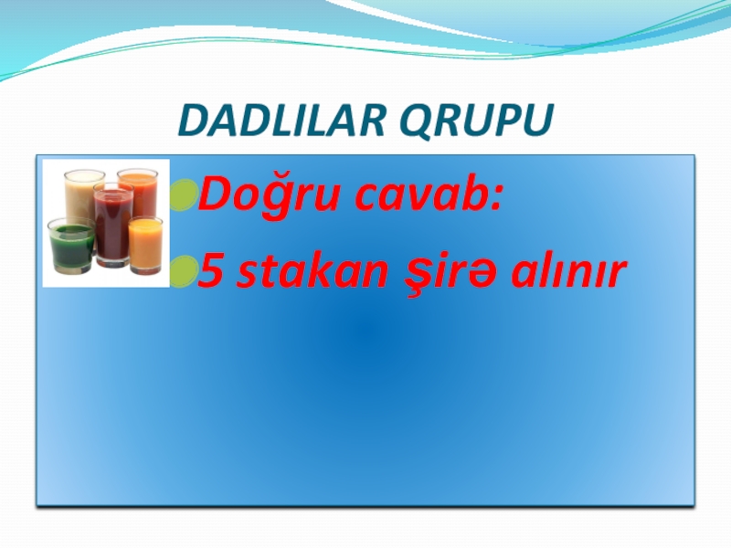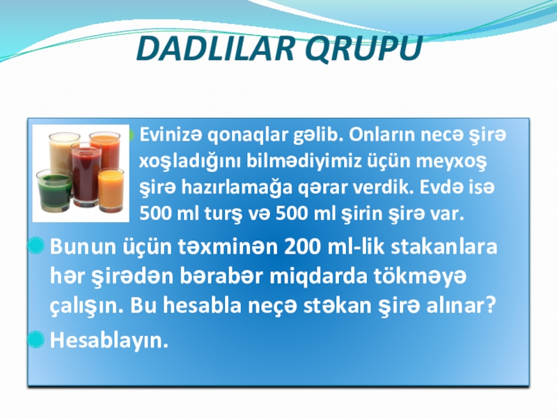 DADLILAR QRUPUDoğru cavab: 5 stakan şirə alınır