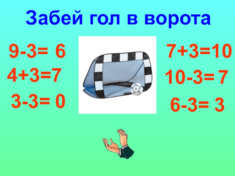 9-3=4+3=3-3=7+3=10-3=6-3=6701073Забей гол в ворота