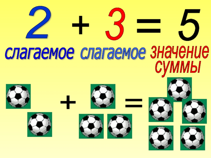 2+3=5слагаемоеслагаемое+=