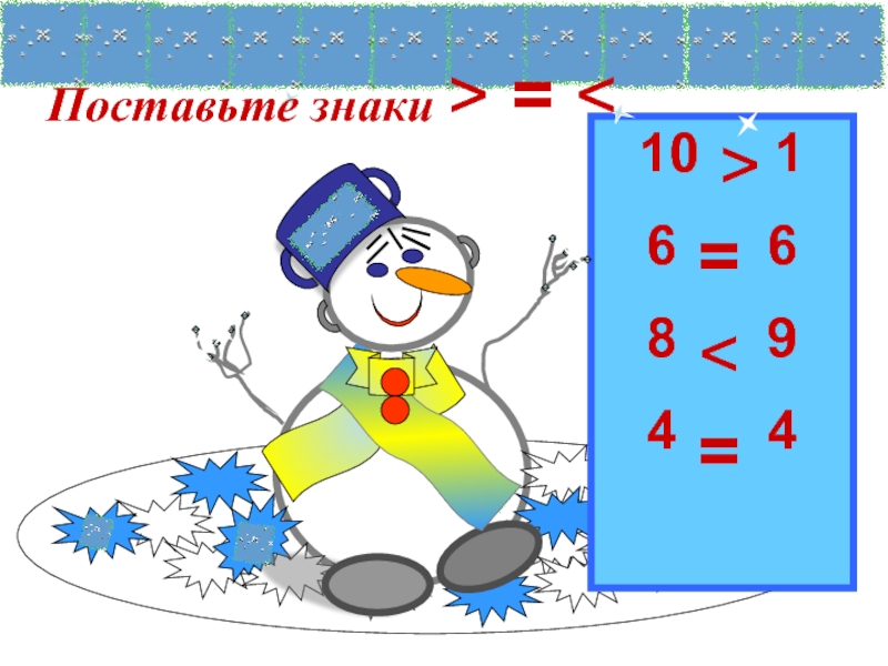 10   16   68   94   4Поставьте знаки > = =