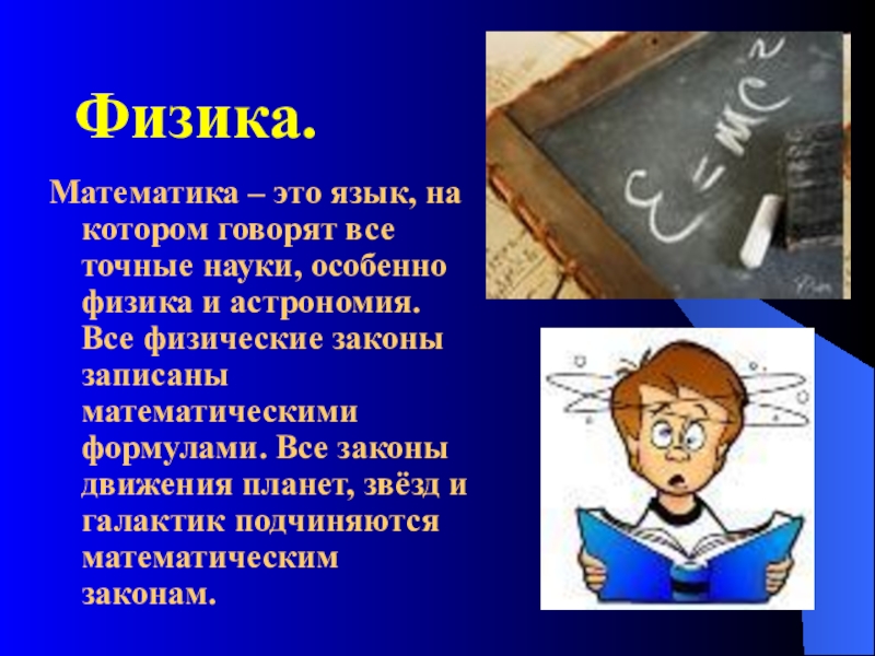 физика и астрономия. Все физические законы записаны математическими формулами. Все законы движения планет, звёзд и галактик подчиняются математическим законам.