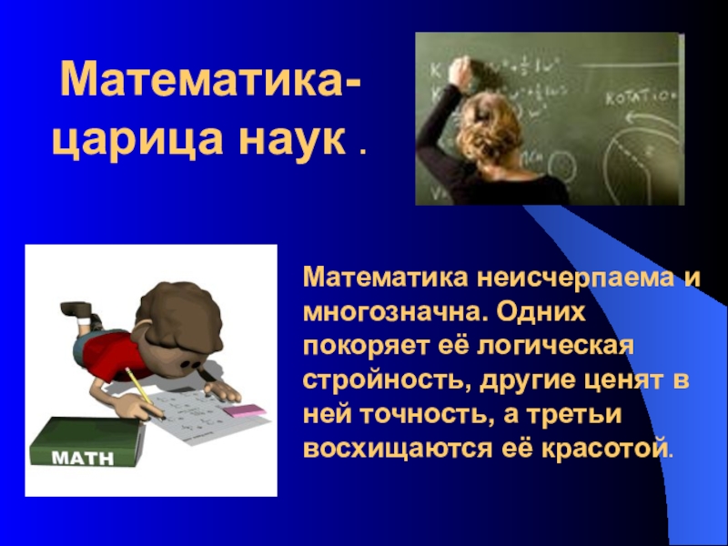 Математика неисчерпаема и многозначна. Одних покоряет её логическая