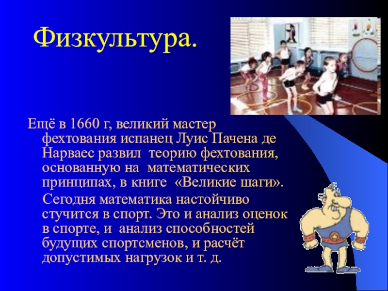 Сегодня математика настойчиво стучится в спорт. Это и анализ оценок в спорте, и анализ способностей будущих спортсменов, и расчёт допустимых нагрузок и т. д.