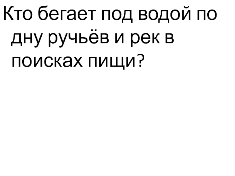 Слайд 2Кто бегает под водой по дну ручьёв и рек в поисках