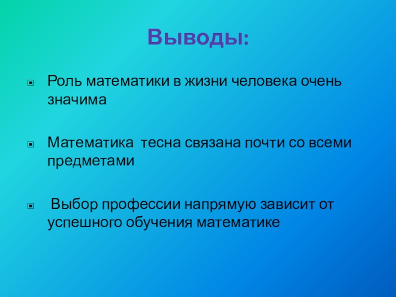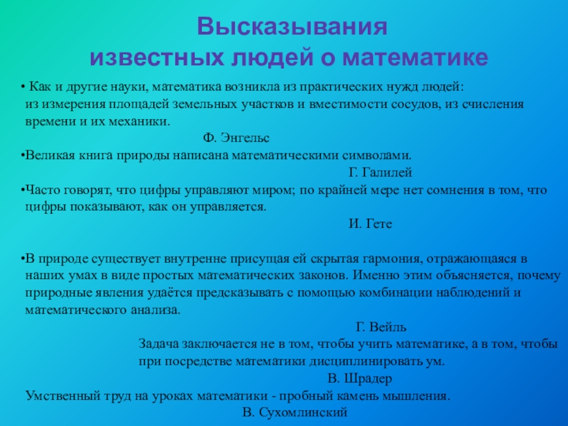Математика позволяет сформировать определенные формы мышления, необходимые для изучения окружающего нас мира.