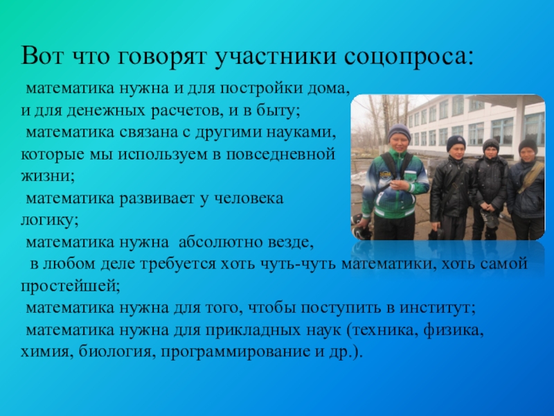Цель: выяснить, что значит математика в жизни людей: второстепенная наука или неотъемлемая часть жизни.