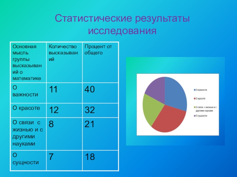 том, что математика является жизнью для 70 % из числа опрошенных, для 20% из числа опрошенных - это просто наука, 10% человек затруднились ответить, что для них значит математика.