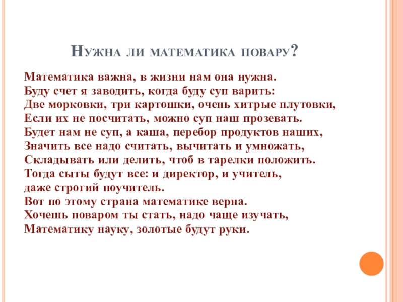 «Математика в профессии повара»