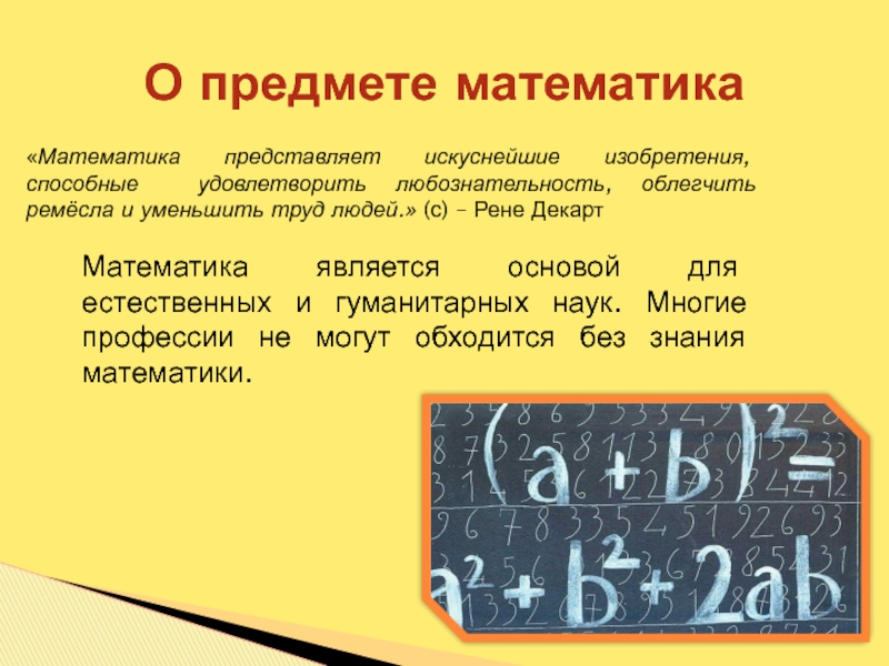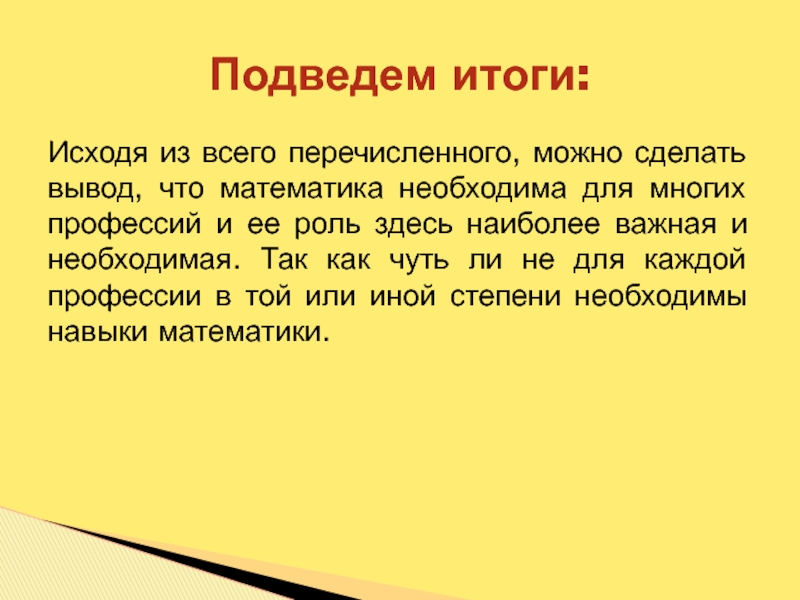 Математика является основой для естественных и гуманитарных наук. Многие профессии не могут обходится без знания математики.