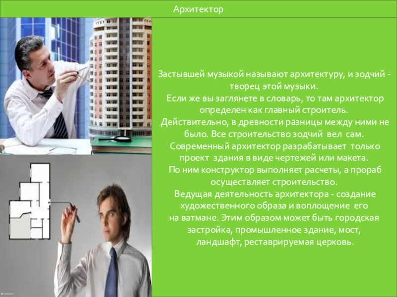Ведущая деятельность архитектора - создание художественного образа и воплощение его