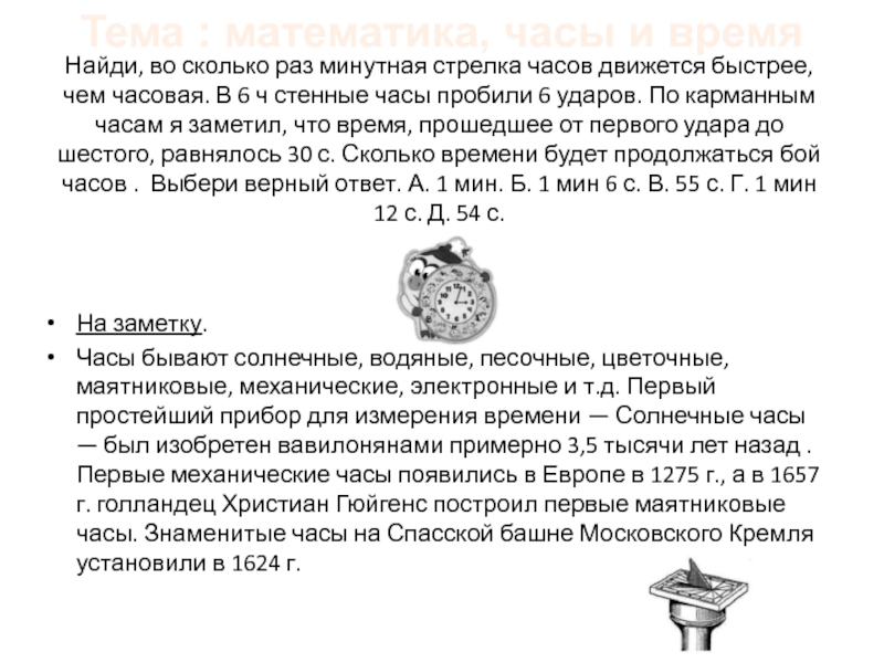 Тема : математика, часы и время