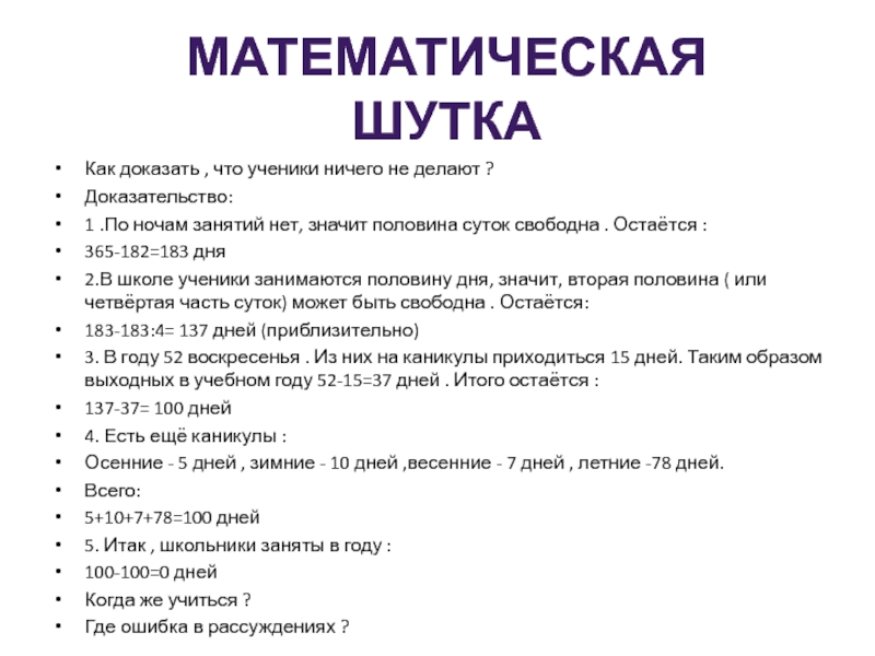 МАТЕМАТИЧЕСКАЯ ШУТКА