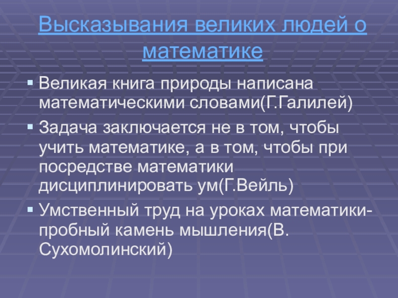 Умственный труд на уроках математики- пробный камень мышления(В.Сухомолинский)