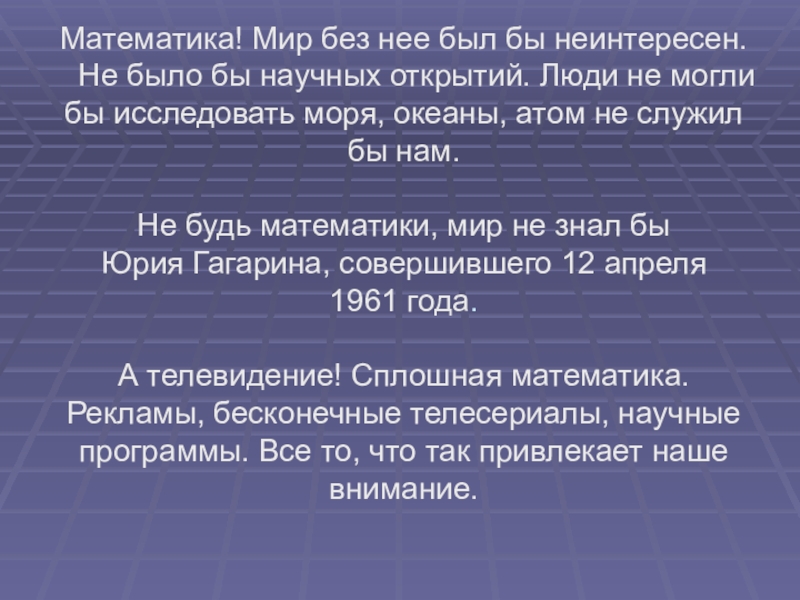 Слайд 3Математика! Мир без нее был бы неинтересен.