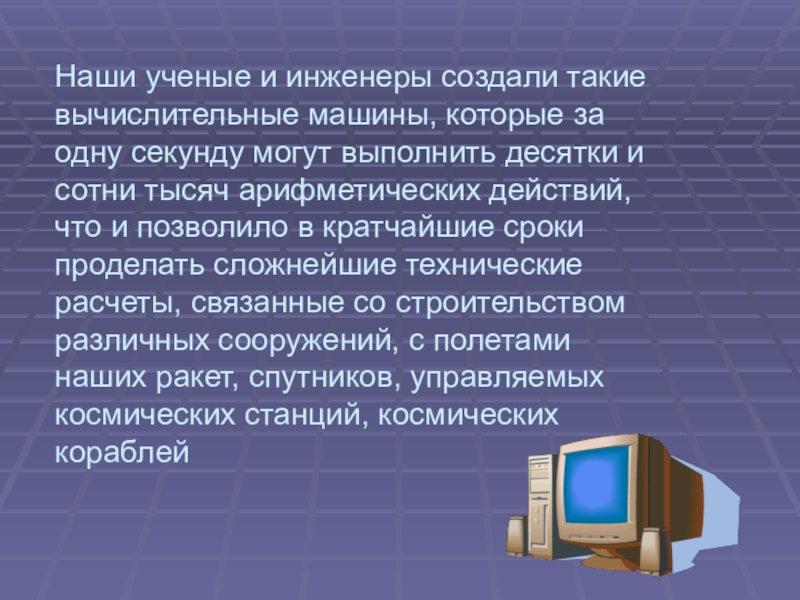 Слайд 4Наши ученые и инженеры создали такие вычислительные машины, которые за одну