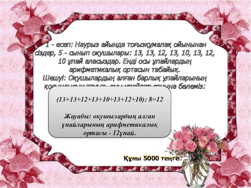 Жауабы: оқушылардың алған ұпайларының арифметикалық ортасы - 12ұпай.