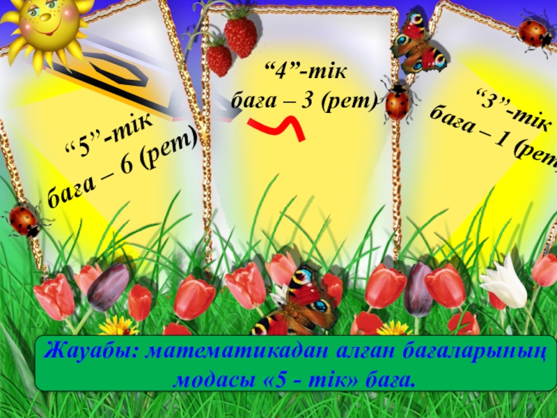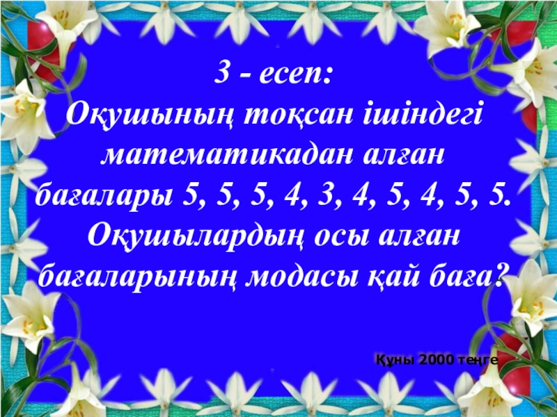 Жауабы: математикадан алған бағаларының модасы «5 - тік» баға.