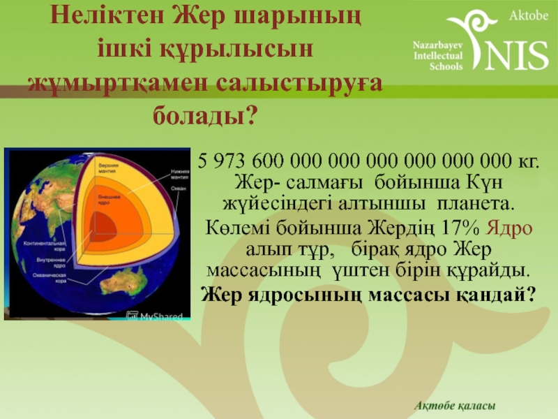 Неліктен Жер шарының ішкі құрылысын жұмыртқамен салыстыруға болады?