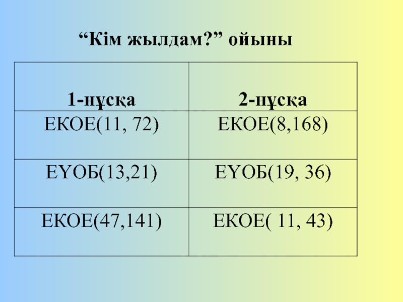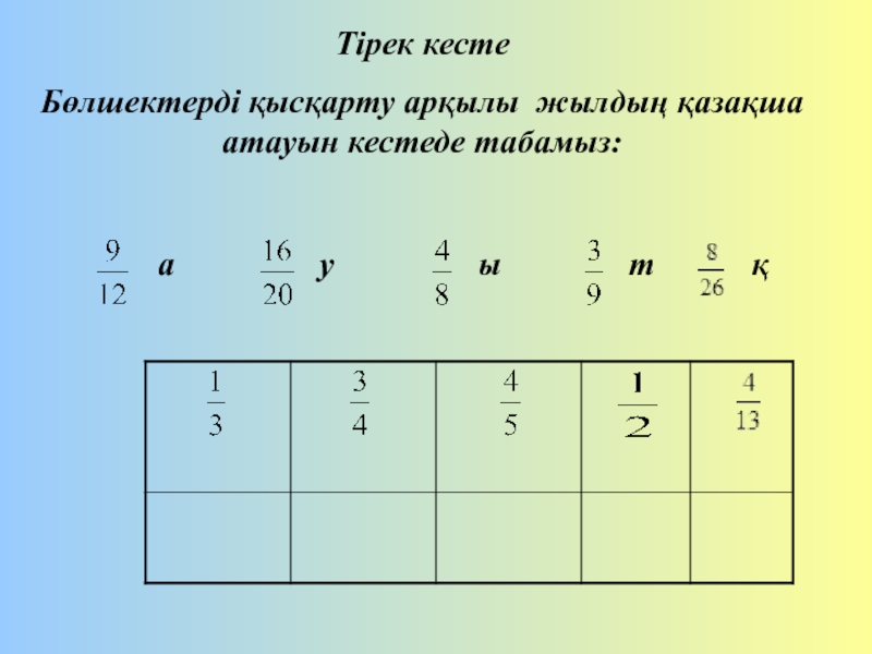 Тірек кестеБөлшектерді қысқарту арқылы жылдың қазақша атауын кестеде табамыз: