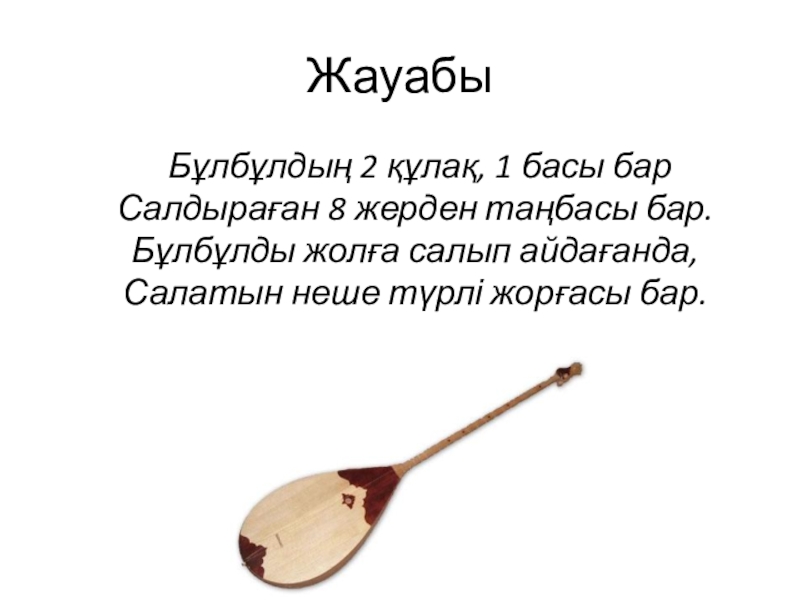 Жауабы   Бұлбұлдың 2 құлақ, 1 басы бар Салдыраған 8 жерден таңбасы бар. Бұлбұлды жолға салып