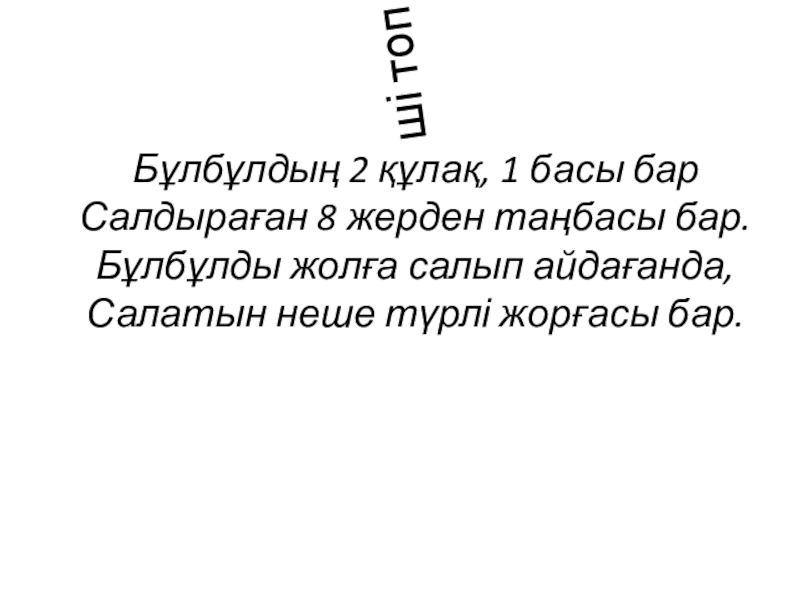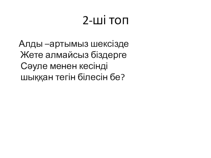 2-ші топ  Алды –артымыз шексізде Жете алмайсыз біздерге Сәуле менен кесінді шыққан тегін білесін бе?