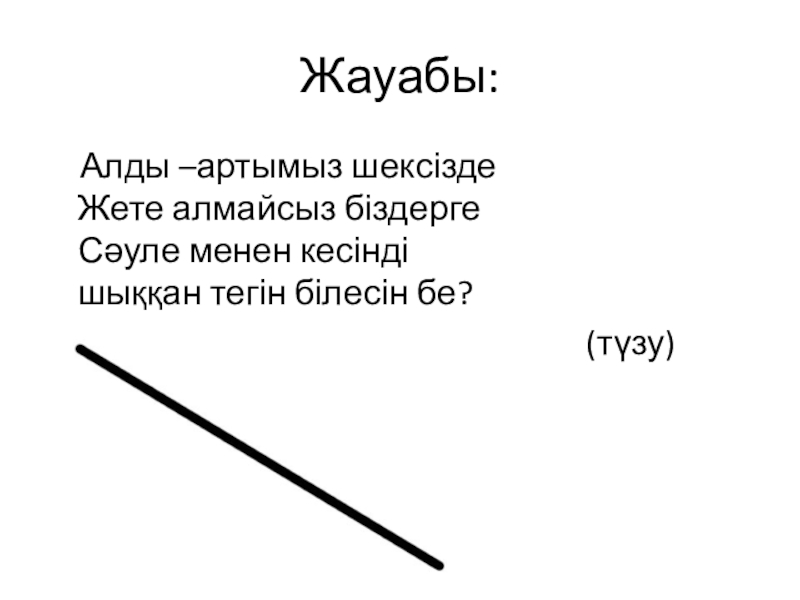 Жауабы:  Алды –артымыз шексізде Жете алмайсыз біздерге Сәуле менен кесінді шыққан тегін білесін бе?
