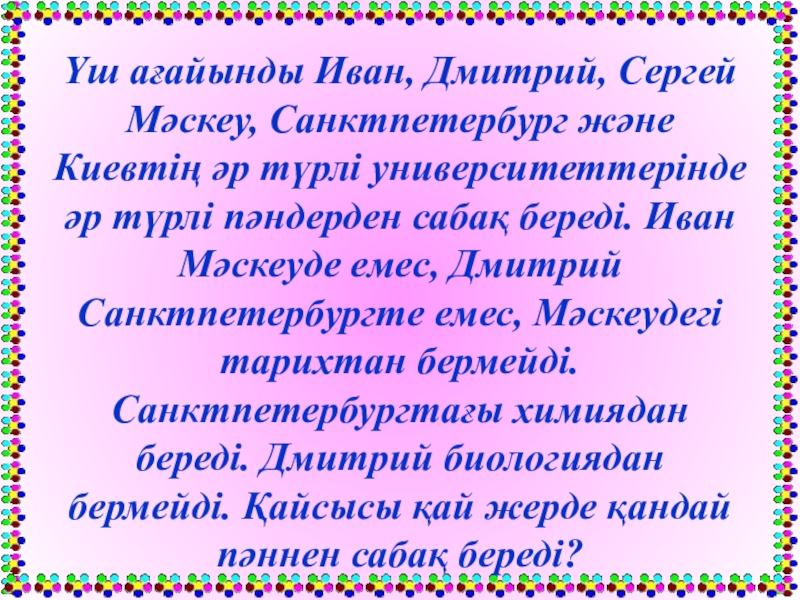 «Ұл мен қыздарымның саны бірдей, ал әр ұлымның үш қарындасы бар». Бұл кісінің қанша баласы бар?(