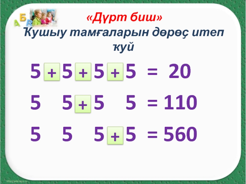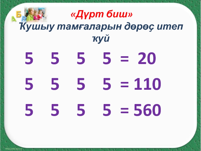 «Дүрт биш»  Ҡушыу тамғаларын дөрөҫ итеп ҡуй  5  5  5  5