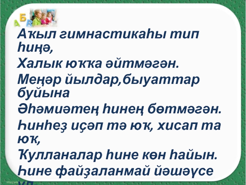 Слайд 2Аҡыл гимнастикаһы тип һиңә,