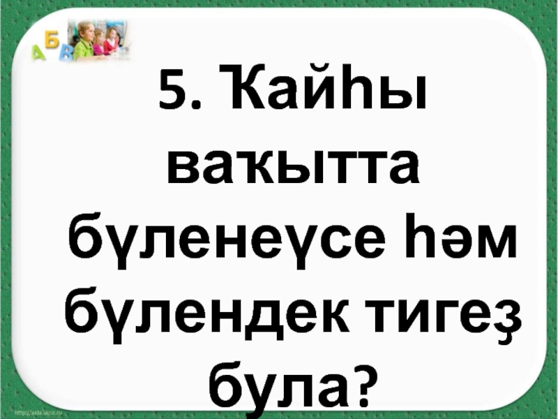 5. Ҡайһы ваҡытта бүленеүсе һәм бүлендек тигеҙ була?
