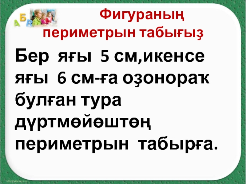 Фигураның периметрын табығыҙБер яғы 5 см,икенсе яғы 6 см-ға оҙонораҡ булған