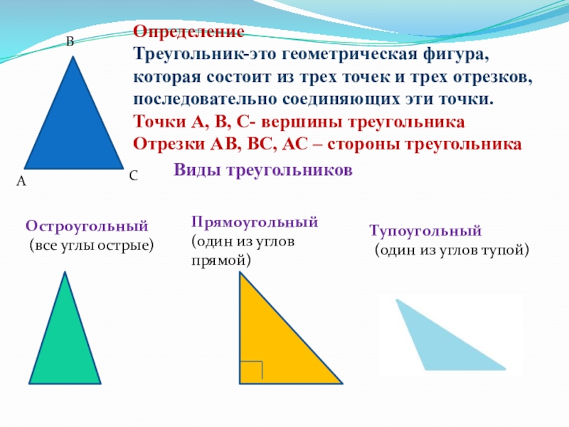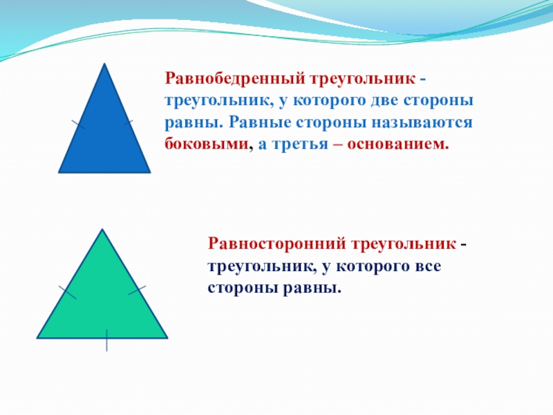 Равносторонний треугольник - треугольник, у которого все стороны равны.