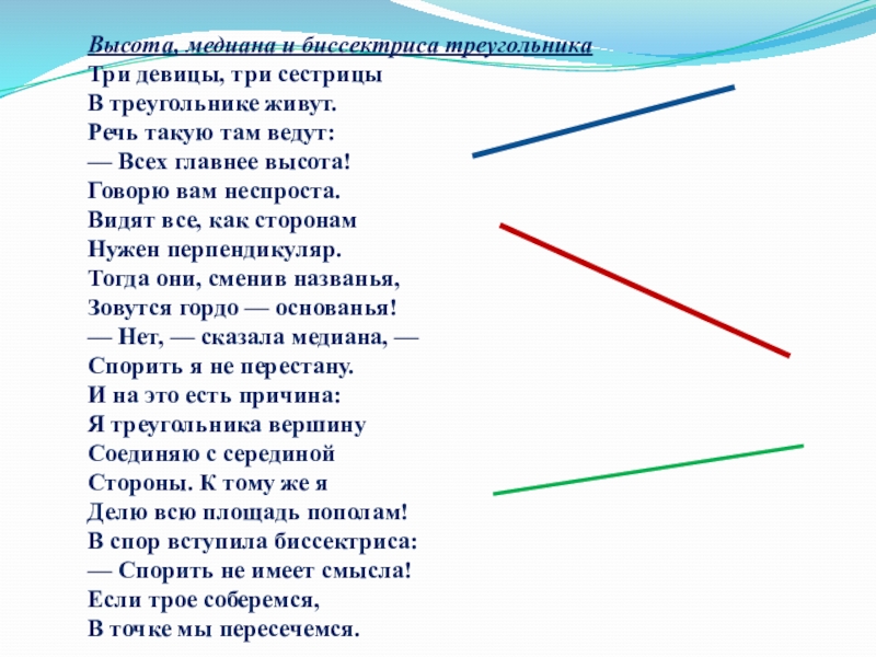 Биссектриса треугольника- это отрезок биссектрисы угла, проведенный из вершины треугольника к противолежащей стороне (делит углы пополам).
