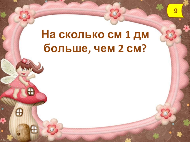Слайд 10На сколько см 1 дм больше, чем 2 см?