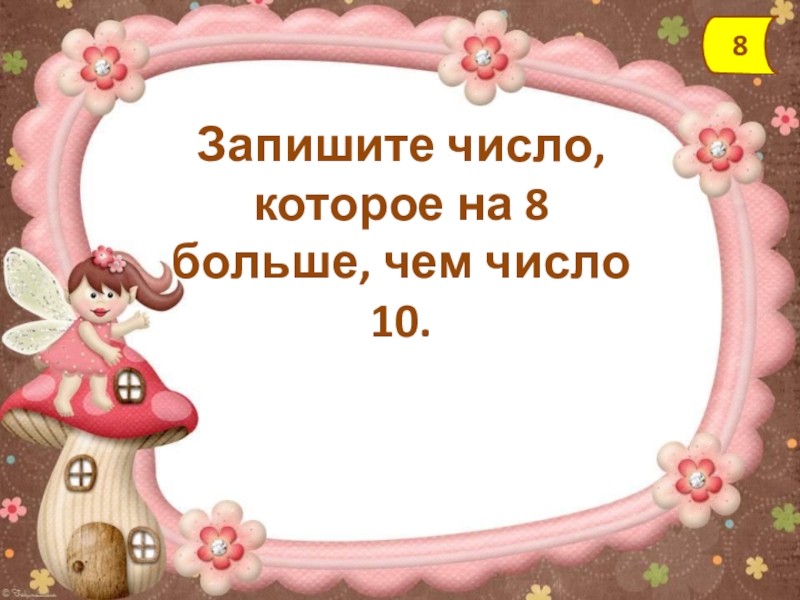 Слайд 9Запишите число, которое на 8 больше, чем число 10.