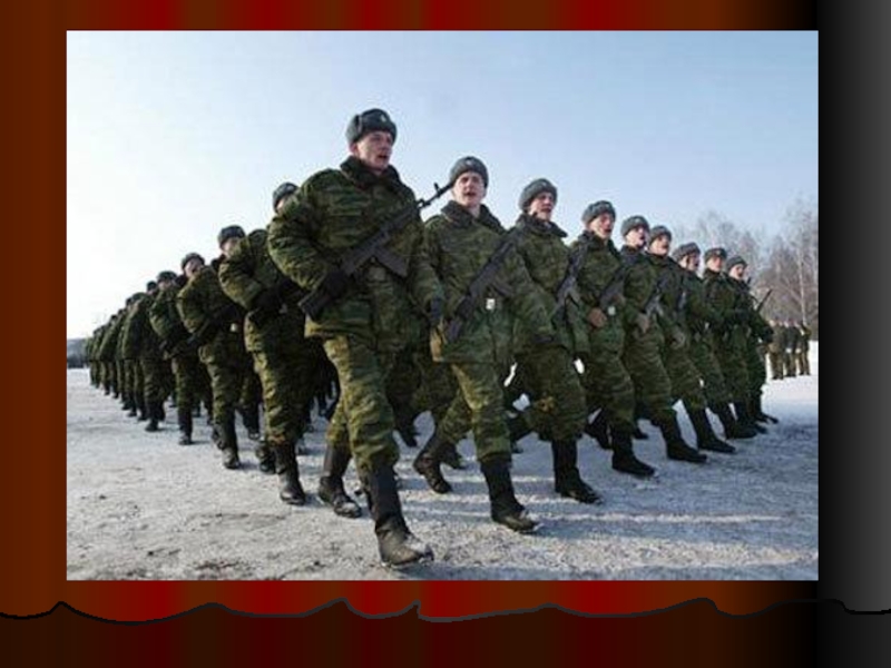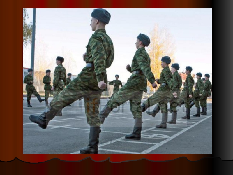 Слайд 5Стоим мы на посту, повзводно и поротно.
