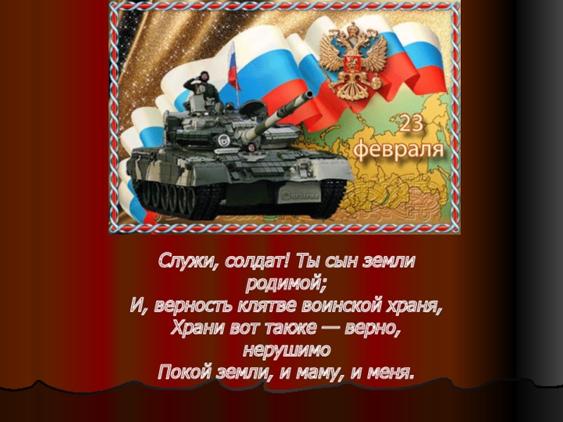 Слайд 55Служи, солдат! Ты сын земли родимой;