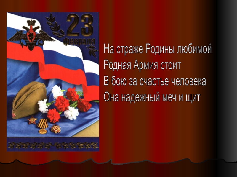 Слайд 2На страже Родины любимой Родная Армия стоит В бою за счастье