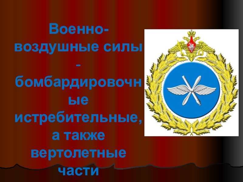 Военно-воздушные силы - бомбардировочные истребительные, а также вертолетные части и соединения.