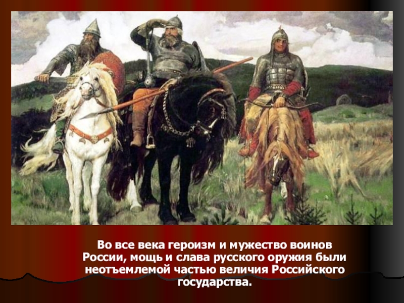 Слайд 3Во все века героизм и мужество воинов России, мощь и слава