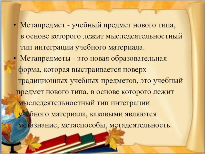 Слайд 29Метапредмет - учебный предмет нового типа,