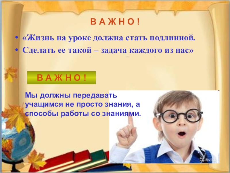 учащимся не просто знания, а