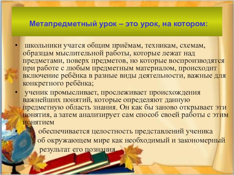 Слайд 14 Метапредметный урок – это урок, на котором: