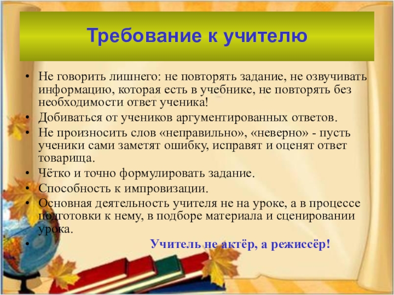 Требование к учителю
