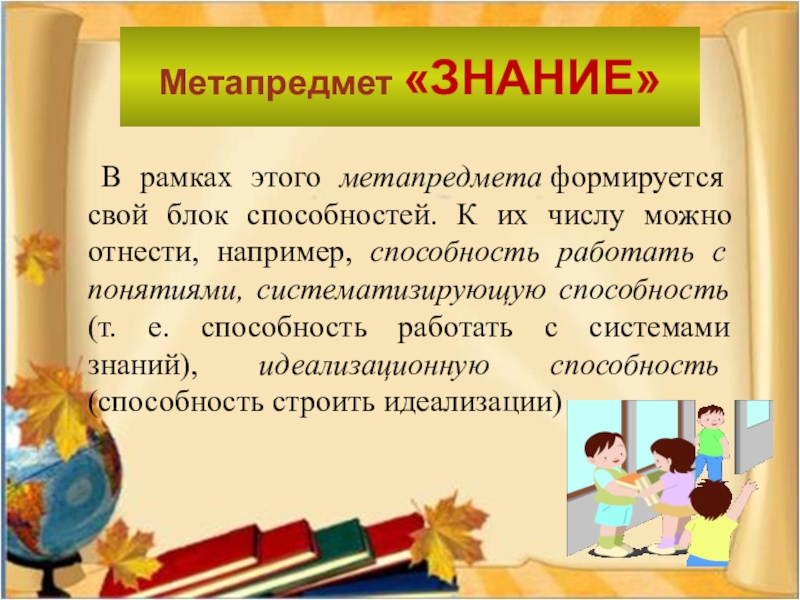 Слайд 23Метапредмет «ЗНАНИЕ»