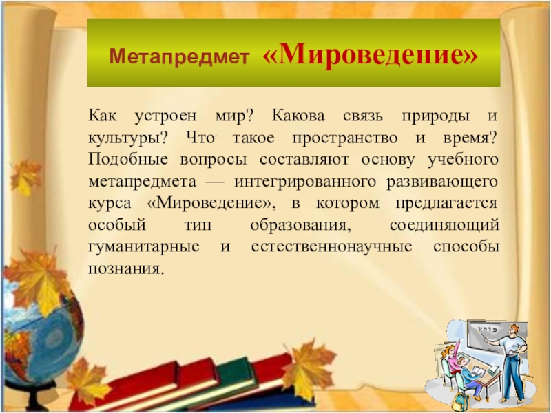 Слайд 27Метапредмет «Мироведение»