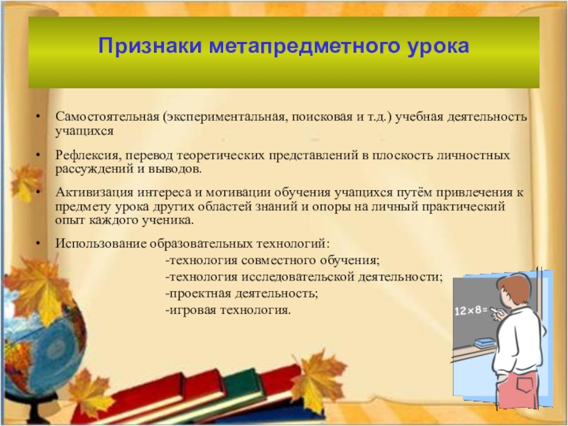 Учителю метапредметный урок позволяет воспитывать у ребят охоту к целенаправленному преодолению трудностей на пути познания.